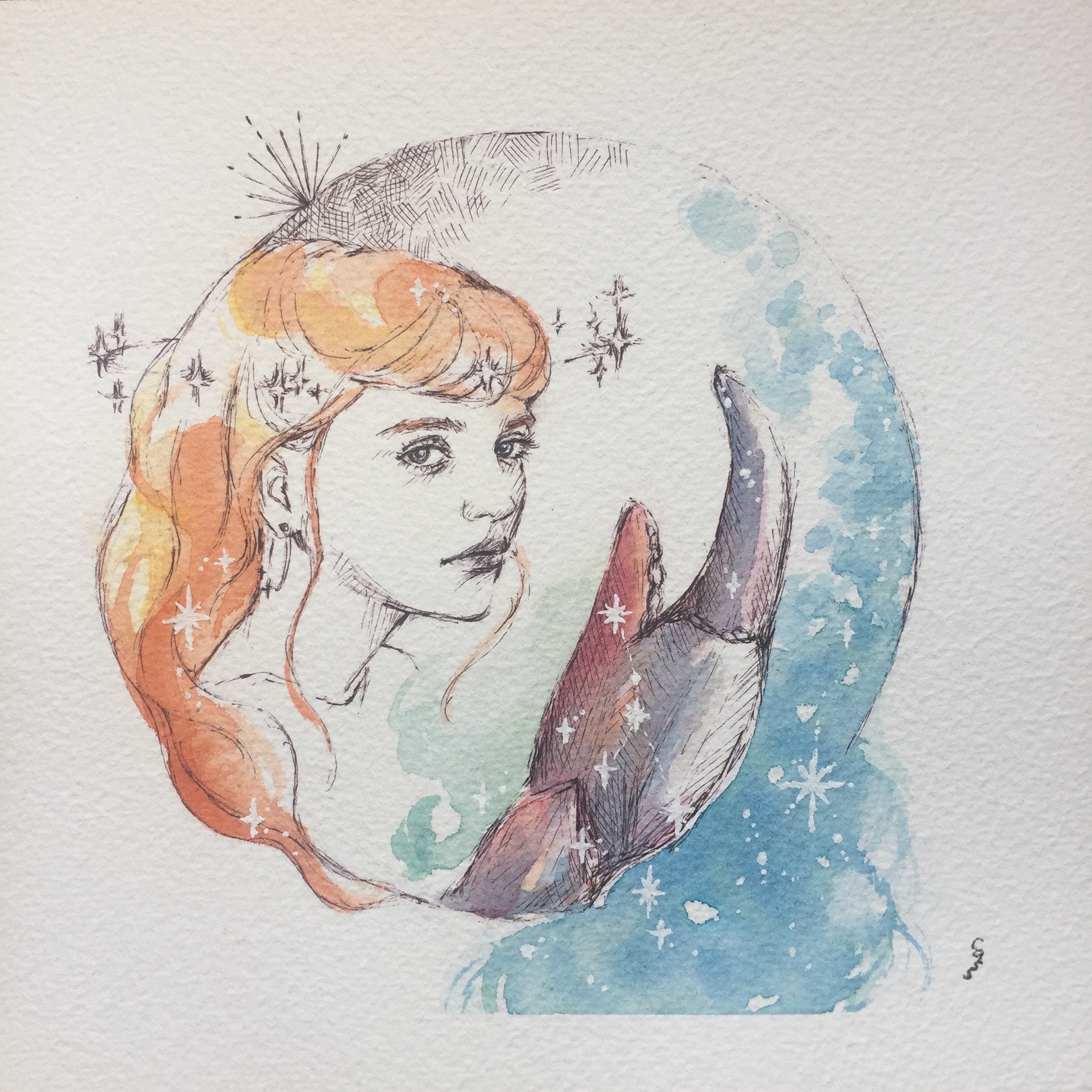 watercolour | paper cotton 100% | pen | 7 x 7
